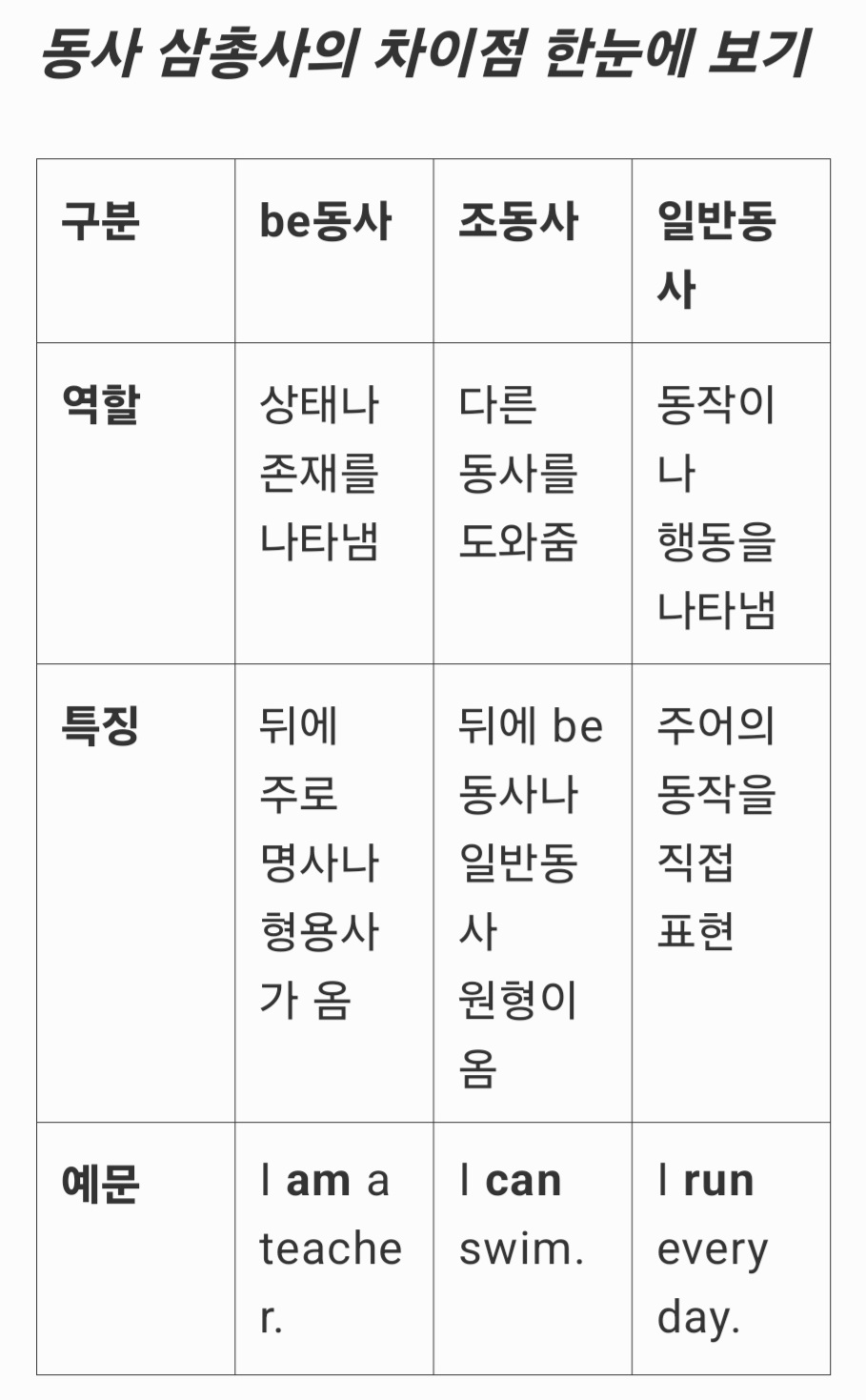 동사 삼총사란 바로 be동사, 조동사, 그리고 일반동사입니다.