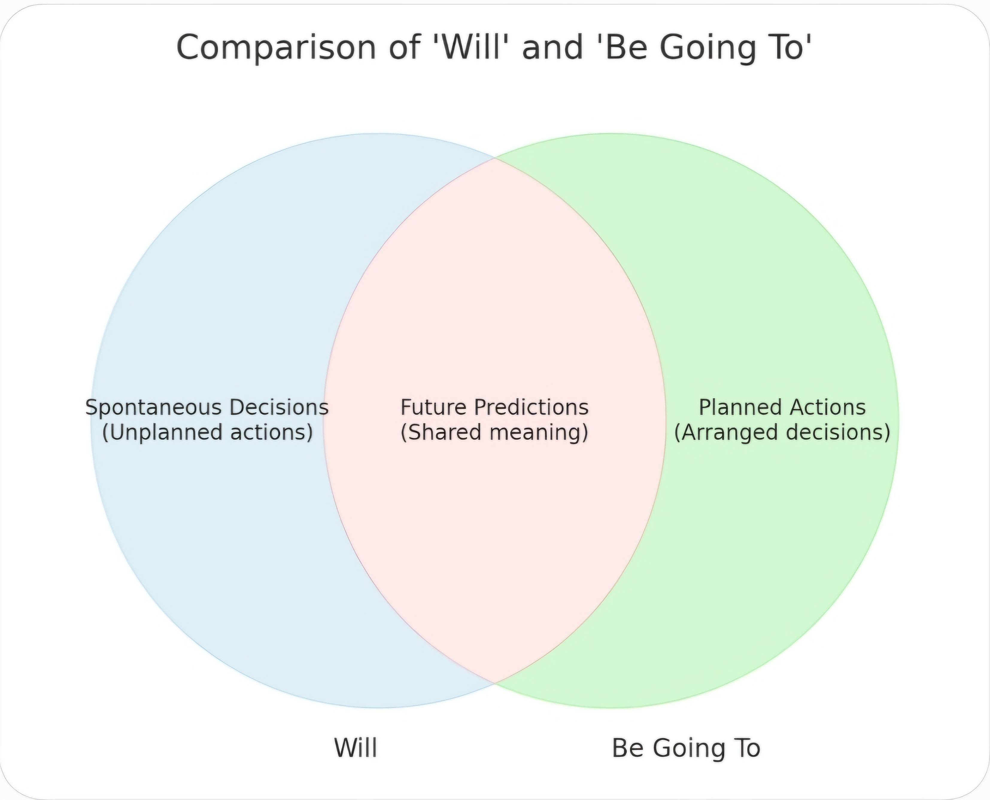 Will과 be going to는 둘 다 미래를 말할 때 쓰이지만, 다음처럼 구별하면 더 자연스럽게 사용할 수 있어요.